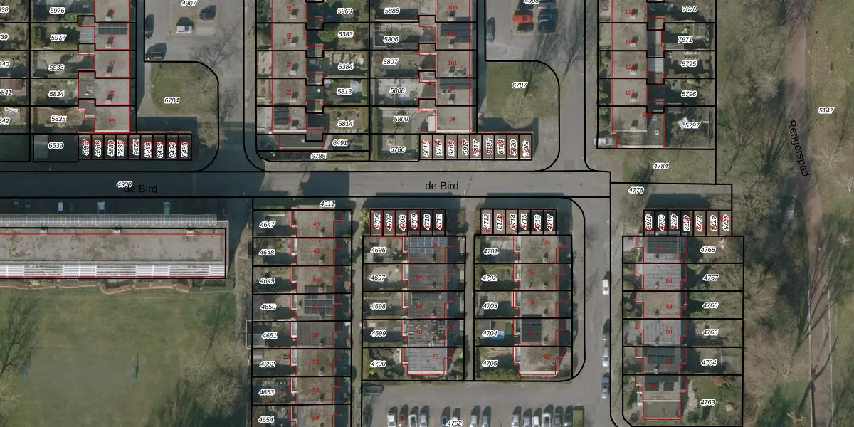 Gebruik de zoekbalk of klik op een perceel voor informatie over de adressen binnen dit perceel.