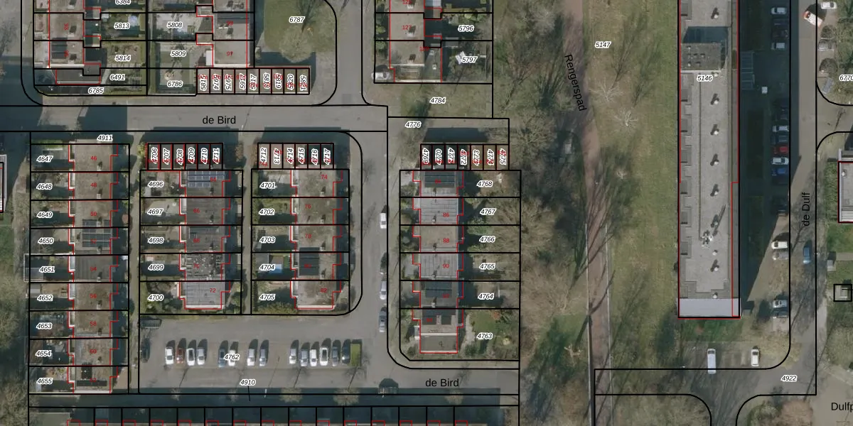 de Bird 86 is gelegen op kadastraal perceel LWD00E4767. Deze kadastrale aanduiding is uniek en wordt gebruikt door het Kadaster om eigendomsrechten en andere zakelijke rechten vast te leggen. Het perceel maakt onderdeel uit van de kadastrale gemeente Leeuwarden.