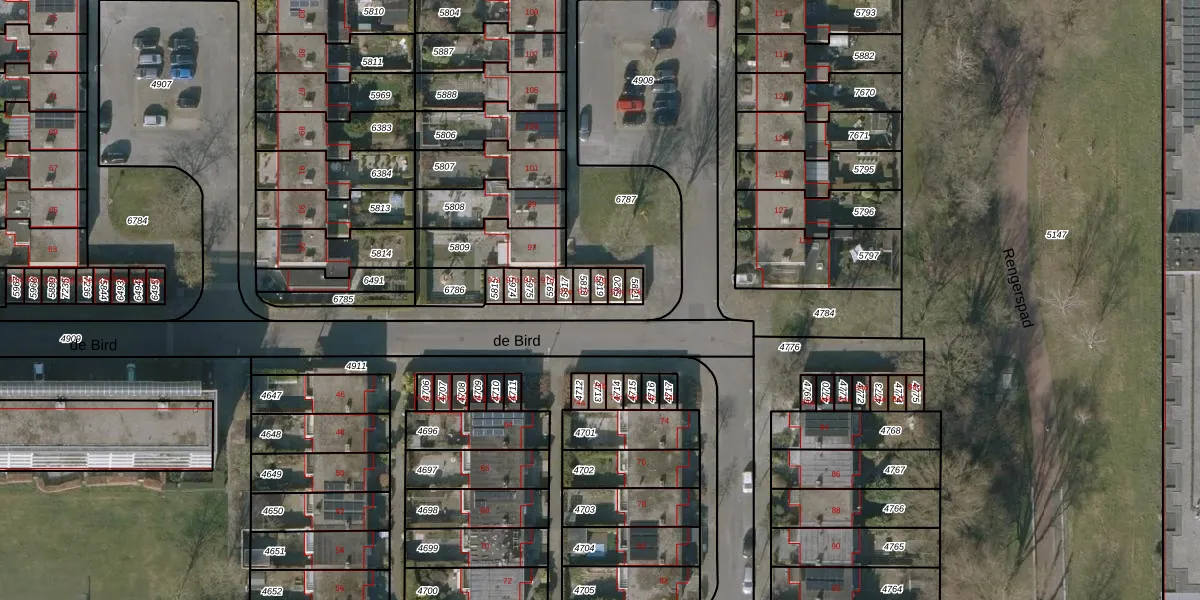 Het perceel waarop de Bird 97-g staat heeft een oppervlakte van 18 m². Dit is een klein perceel. De perceeloppervlakte wordt geregistreerd door het Kadaster. Gedetailleerde informatie over de maten van dit perceel kunt u vinden in het rapport Kadastrale kaart met maatvoering van de Bird 97-g.