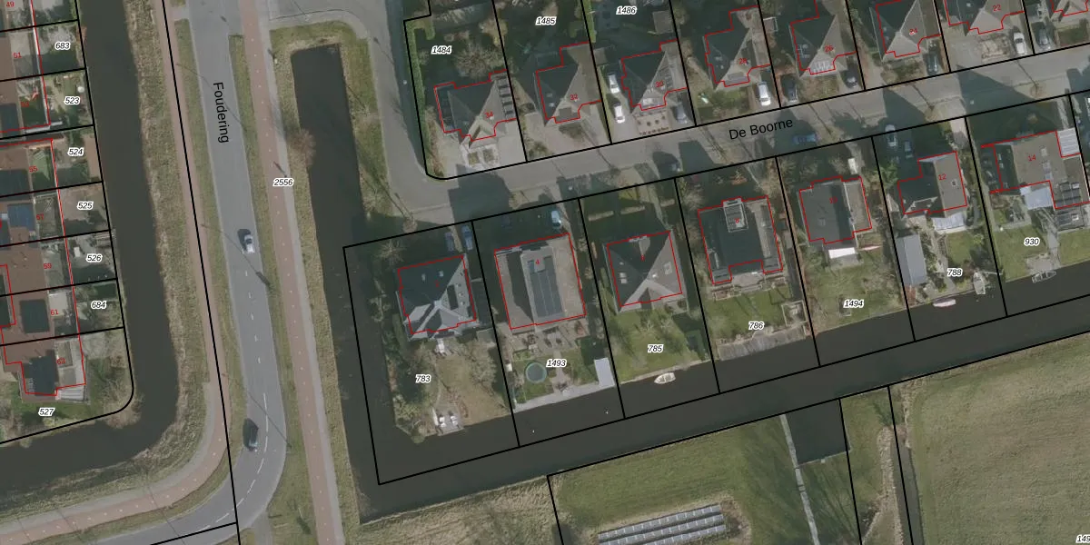 De Boorne 4 is gelegen op kadastraal perceel HZM00K1493. Deze kadastrale aanduiding is uniek en wordt gebruikt door het Kadaster om eigendomsrechten en andere zakelijke rechten vast te leggen. Het perceel maakt onderdeel uit van de kadastrale gemeente Huizum.