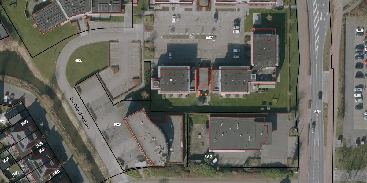 Het perceel waarop De Drie Dukatons 26 staat heeft een oppervlakte van 6310 m². Dit is een zeer groot perceel. De perceeloppervlakte wordt geregistreerd door het Kadaster. Gedetailleerde informatie over de maten van dit perceel kunt u vinden in het rapport Kadastrale kaart met maatvoering van De Drie Dukatons 26.