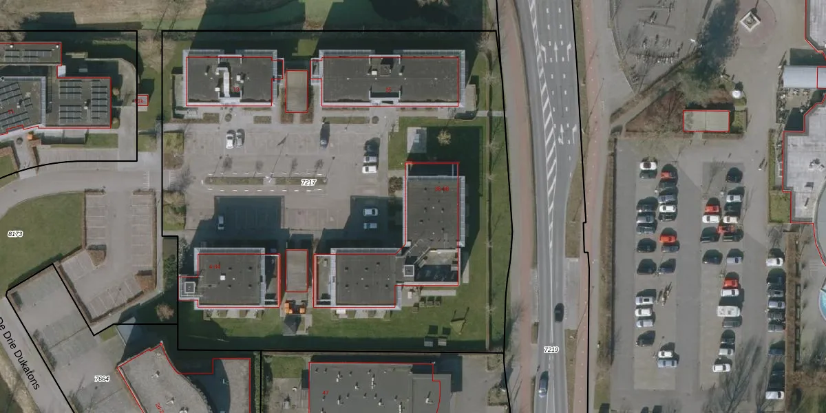 Het perceel waarop De Drie Dukatons 52 staat heeft een oppervlakte van 6310 m². Dit is een zeer groot perceel. De perceeloppervlakte wordt geregistreerd door het Kadaster. Gedetailleerde informatie over de maten van dit perceel kunt u vinden in het rapport Kadastrale kaart met maatvoering van De Drie Dukatons 52.