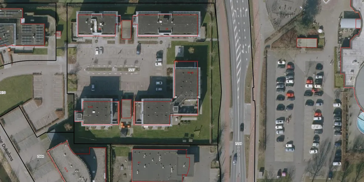 Het perceel waarop De Drie Dukatons 72 staat heeft een oppervlakte van 6310 m². Dit is een zeer groot perceel. De perceeloppervlakte wordt geregistreerd door het Kadaster. Gedetailleerde informatie over de maten van dit perceel kunt u vinden in het rapport Kadastrale kaart met maatvoering van De Drie Dukatons 72.