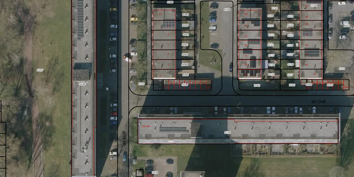 Het perceel waarop de Dulf 1-c staat heeft een oppervlakte van 164 m². Dit is een middelgroot perceel. De perceeloppervlakte wordt geregistreerd door het Kadaster. Gedetailleerde informatie over de maten van dit perceel kunt u vinden in het rapport Kadastrale kaart met maatvoering van de Dulf 1-c.