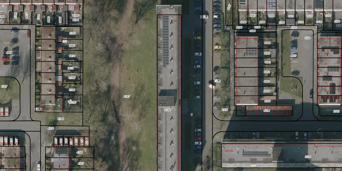 Het perceel waarop de Dulf 104 staat heeft een oppervlakte van 1603 m². Dit is een zeer groot perceel. De perceeloppervlakte wordt geregistreerd door het Kadaster. Gedetailleerde informatie over de maten van dit perceel kunt u vinden in het rapport Kadastrale kaart met maatvoering van de Dulf 104.