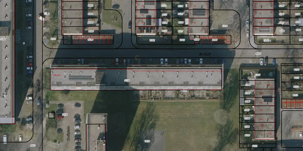 Het perceel waarop de Dulf 208 staat heeft een oppervlakte van 1620 m². Dit is een zeer groot perceel. De perceeloppervlakte wordt geregistreerd door het Kadaster. Gedetailleerde informatie over de maten van dit perceel kunt u vinden in het rapport Kadastrale kaart met maatvoering van de Dulf 208.