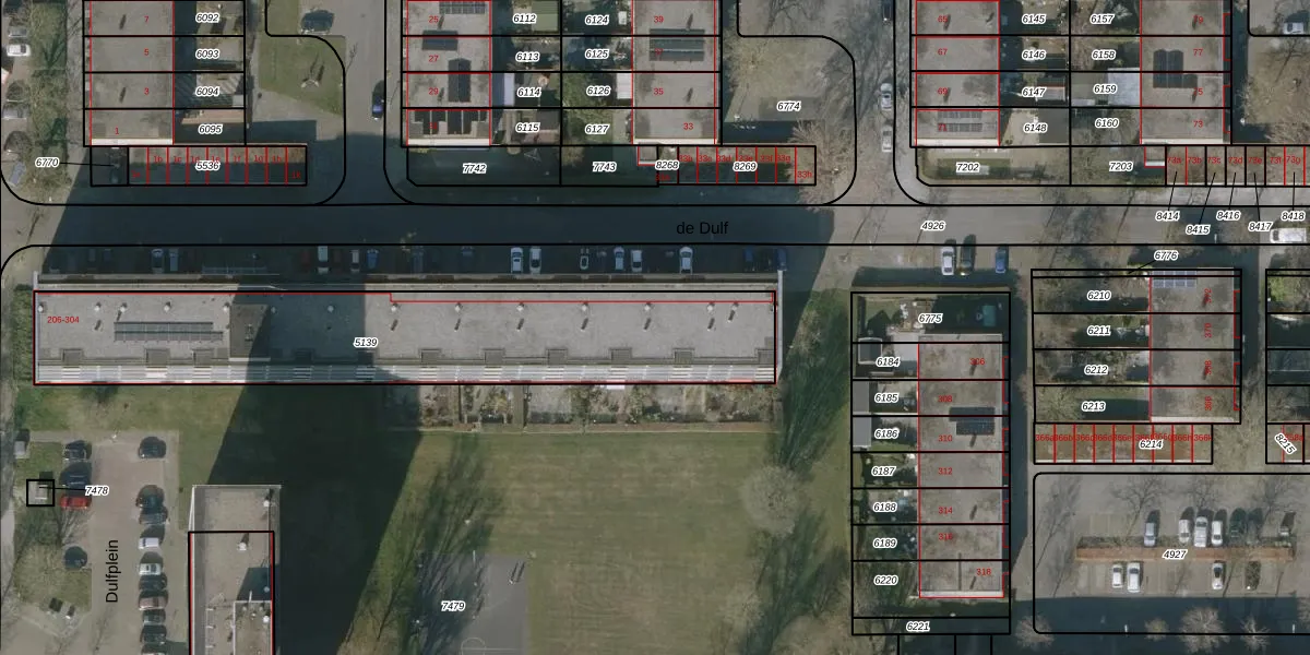 Het perceel waarop de Dulf 214 staat heeft een oppervlakte van 1620 m². Dit is een zeer groot perceel. De perceeloppervlakte wordt geregistreerd door het Kadaster. Gedetailleerde informatie over de maten van dit perceel kunt u vinden in het rapport Kadastrale kaart met maatvoering van de Dulf 214.