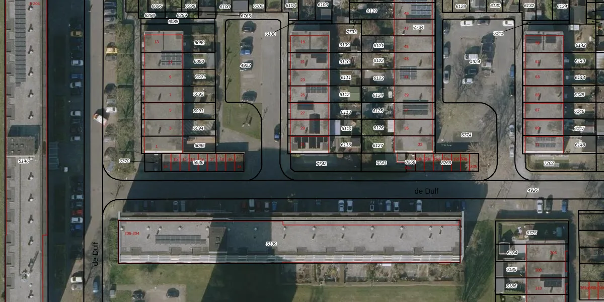Het perceel waarop de Dulf 31 staat heeft een oppervlakte van 140 m². Dit is een middelgroot perceel. De perceeloppervlakte wordt geregistreerd door het Kadaster. Gedetailleerde informatie over de maten van dit perceel kunt u vinden in het rapport Kadastrale kaart met maatvoering van de Dulf 31.