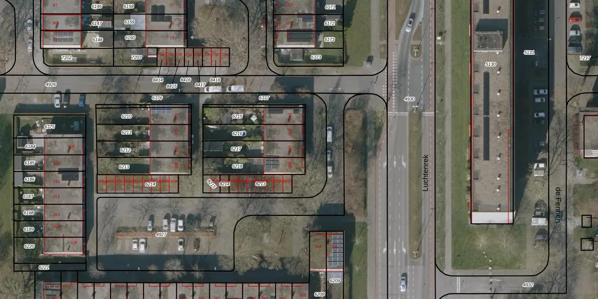 Gebruik de zoekbalk of klik op een perceel voor informatie over de adressen binnen dit perceel.