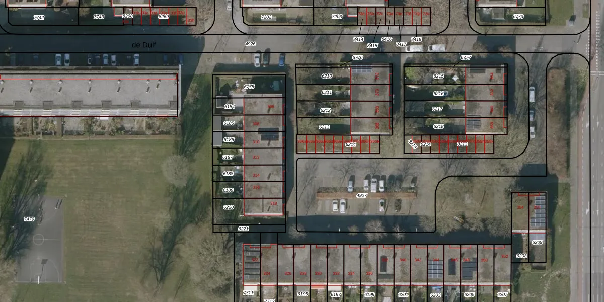 Het perceel waarop de Dulf 366-a staat heeft een oppervlakte van 166 m². Dit is een middelgroot perceel. De perceeloppervlakte wordt geregistreerd door het Kadaster. Gedetailleerde informatie over de maten van dit perceel kunt u vinden in het rapport Kadastrale kaart met maatvoering van de Dulf 366-a.