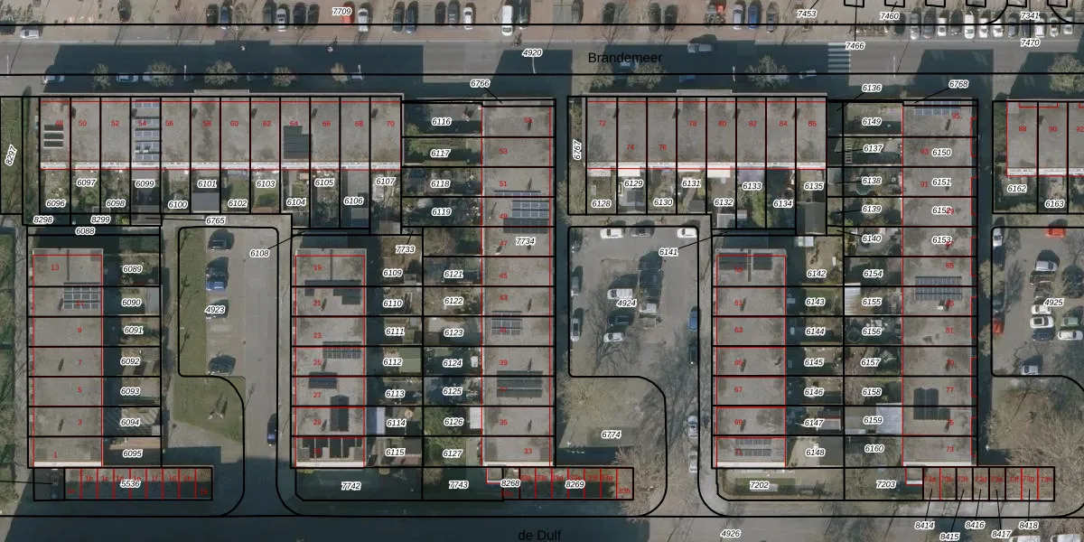 Gebruik de zoekbalk of klik op een perceel voor informatie over de adressen binnen dit perceel.