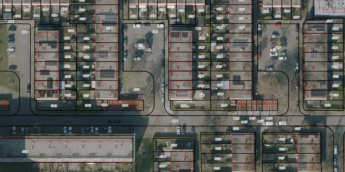 Het perceel waarop de Dulf 69 staat heeft een oppervlakte van 132 m². Dit is een middelgroot perceel. De perceeloppervlakte wordt geregistreerd door het Kadaster. Gedetailleerde informatie over de maten van dit perceel kunt u vinden in het rapport Kadastrale kaart met maatvoering van de Dulf 69.