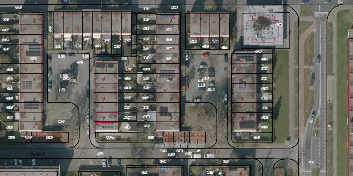 Het perceel waarop de Dulf 81 staat heeft een oppervlakte van 136 m². Dit is een middelgroot perceel. De perceeloppervlakte wordt geregistreerd door het Kadaster. Gedetailleerde informatie over de maten van dit perceel kunt u vinden in het rapport Kadastrale kaart met maatvoering van de Dulf 81.