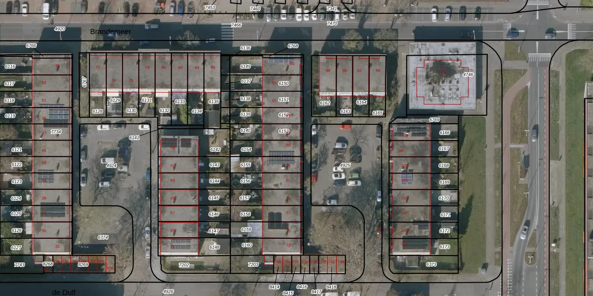 Gebruik de zoekbalk of klik op een perceel voor informatie over de adressen binnen dit perceel.
