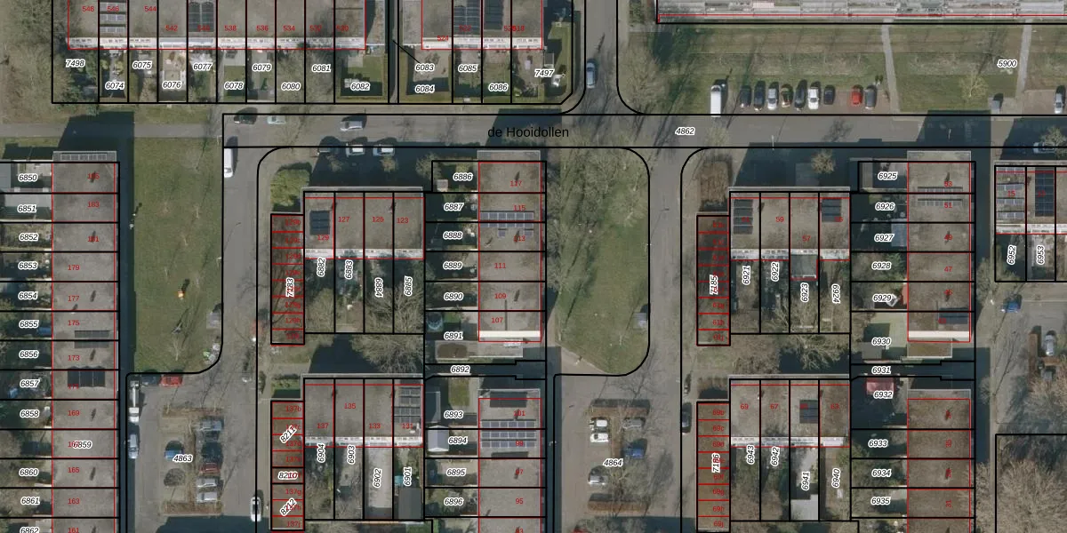Het perceel waarop de Hooidollen 111 staat heeft een oppervlakte van 127 m². Dit is een middelgroot perceel. De perceeloppervlakte wordt geregistreerd door het Kadaster. Gedetailleerde informatie over de maten van dit perceel kunt u vinden in het rapport Kadastrale kaart met maatvoering van de Hooidollen 111.