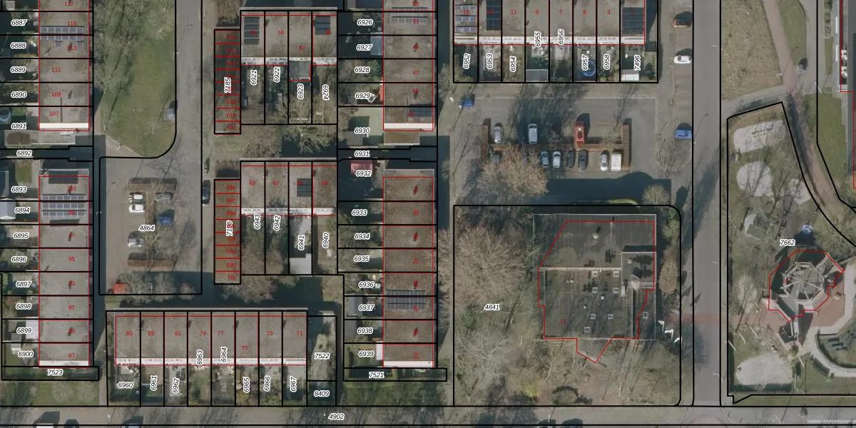 Gebruik de zoekbalk of klik op een perceel voor informatie over de adressen binnen dit perceel.
