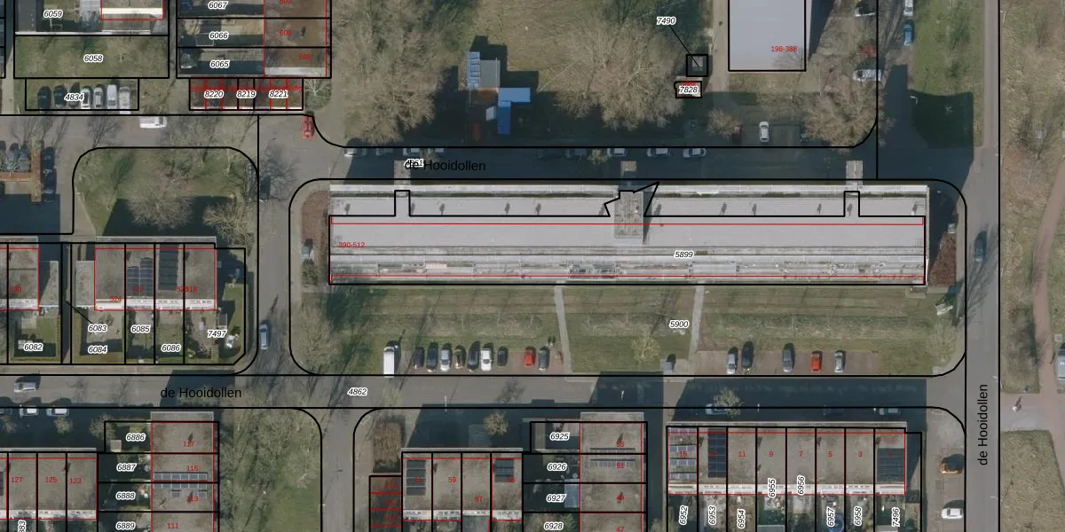 de Hooidollen 404 is gelegen op kadastraal perceel LWD00E5899. Deze kadastrale aanduiding is uniek en wordt gebruikt door het Kadaster om eigendomsrechten en andere zakelijke rechten vast te leggen. Het perceel maakt onderdeel uit van de kadastrale gemeente Leeuwarden.