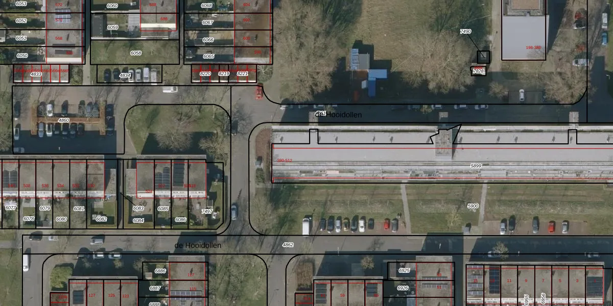 de Hooidollen 418-b is gelegen op kadastraal perceel LWD00E5899. Deze kadastrale aanduiding is uniek en wordt gebruikt door het Kadaster om eigendomsrechten en andere zakelijke rechten vast te leggen. Het perceel maakt onderdeel uit van de kadastrale gemeente Leeuwarden.
