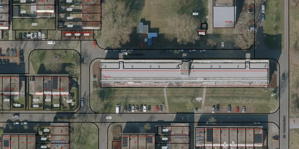 Het perceel waarop de Hooidollen 418-j staat heeft een oppervlakte van 1497 m². Dit is een zeer groot perceel. De perceeloppervlakte wordt geregistreerd door het Kadaster. Gedetailleerde informatie over de maten van dit perceel kunt u vinden in het rapport Kadastrale kaart met maatvoering van de Hooidollen 418-j.