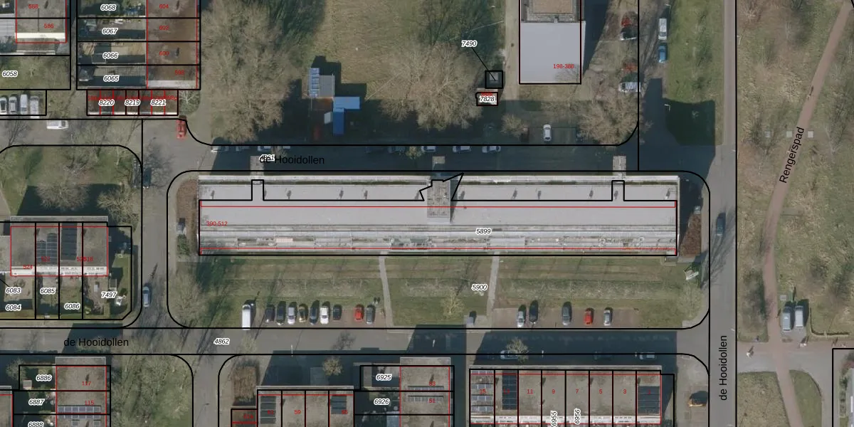 de Hooidollen 418-c is gelegen op kadastraal perceel LWD00E5899. Deze kadastrale aanduiding is uniek en wordt gebruikt door het Kadaster om eigendomsrechten en andere zakelijke rechten vast te leggen. Het perceel maakt onderdeel uit van de kadastrale gemeente Leeuwarden.