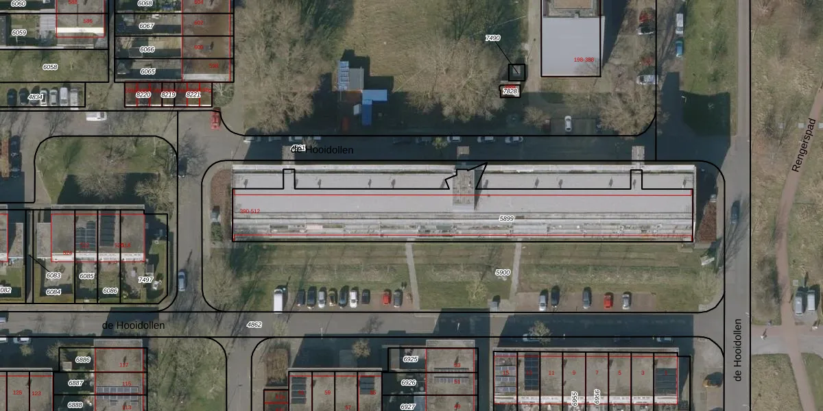 de Hooidollen 418-m is gelegen op kadastraal perceel LWD00E5899. Deze kadastrale aanduiding is uniek en wordt gebruikt door het Kadaster om eigendomsrechten en andere zakelijke rechten vast te leggen. Het perceel maakt onderdeel uit van de kadastrale gemeente Leeuwarden.
