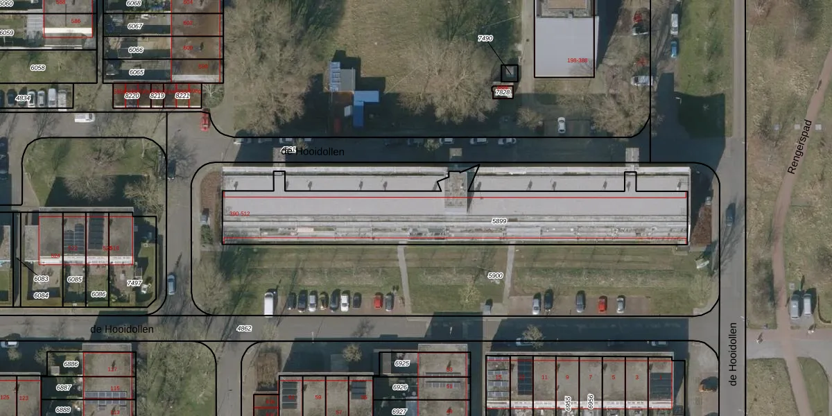 Het perceel waarop de Hooidollen 420-a staat heeft een oppervlakte van 1497 m². Dit is een zeer groot perceel. De perceeloppervlakte wordt geregistreerd door het Kadaster. Gedetailleerde informatie over de maten van dit perceel kunt u vinden in het rapport Kadastrale kaart met maatvoering van de Hooidollen 420-a.