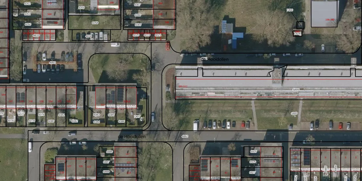 Het perceel waarop de Hooidollen 450 staat heeft een oppervlakte van 1497 m². Dit is een zeer groot perceel. De perceeloppervlakte wordt geregistreerd door het Kadaster. Gedetailleerde informatie over de maten van dit perceel kunt u vinden in het rapport Kadastrale kaart met maatvoering van de Hooidollen 450.