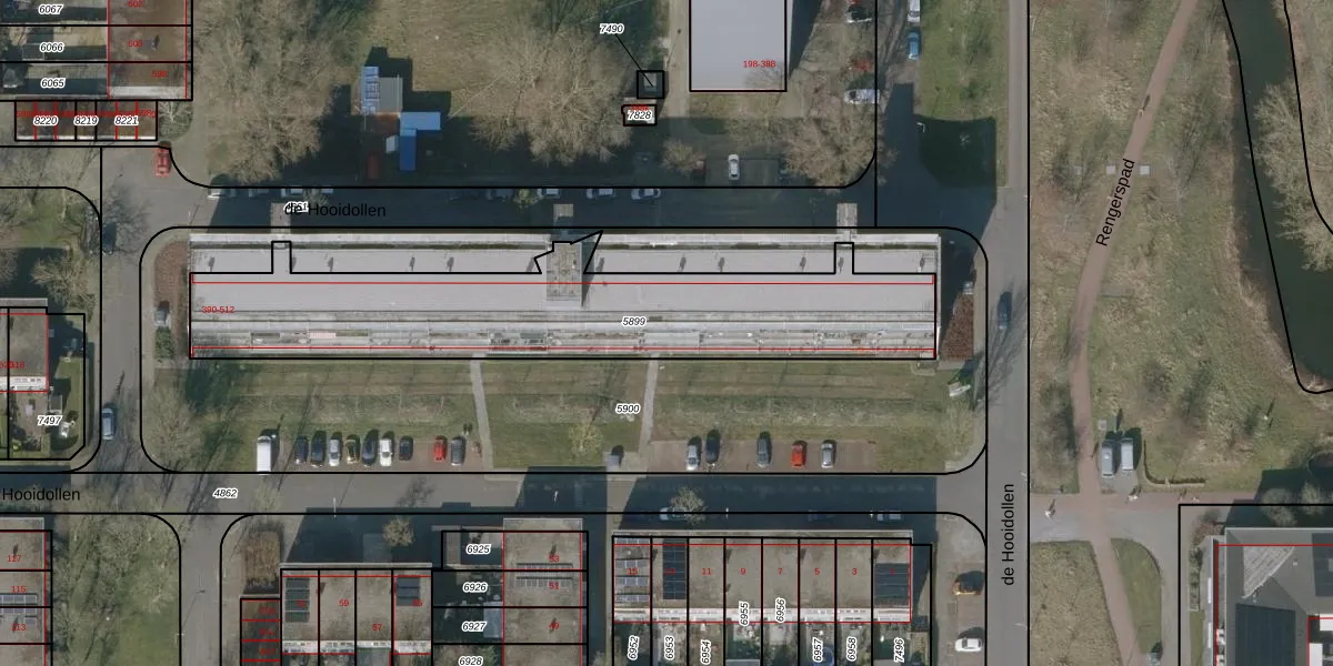 Het perceel waarop de Hooidollen 466 staat heeft een oppervlakte van 1497 m². Dit is een zeer groot perceel. De perceeloppervlakte wordt geregistreerd door het Kadaster. Gedetailleerde informatie over de maten van dit perceel kunt u vinden in het rapport Kadastrale kaart met maatvoering van de Hooidollen 466.