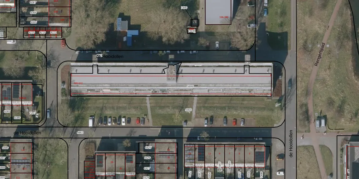de Hooidollen 476 is gelegen op kadastraal perceel LWD00E5899. Deze kadastrale aanduiding is uniek en wordt gebruikt door het Kadaster om eigendomsrechten en andere zakelijke rechten vast te leggen. Het perceel maakt onderdeel uit van de kadastrale gemeente Leeuwarden.