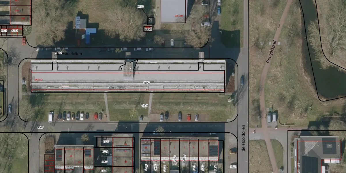 de Hooidollen 500 is gelegen op kadastraal perceel LWD00E5899. Deze kadastrale aanduiding is uniek en wordt gebruikt door het Kadaster om eigendomsrechten en andere zakelijke rechten vast te leggen. Het perceel maakt onderdeel uit van de kadastrale gemeente Leeuwarden.
