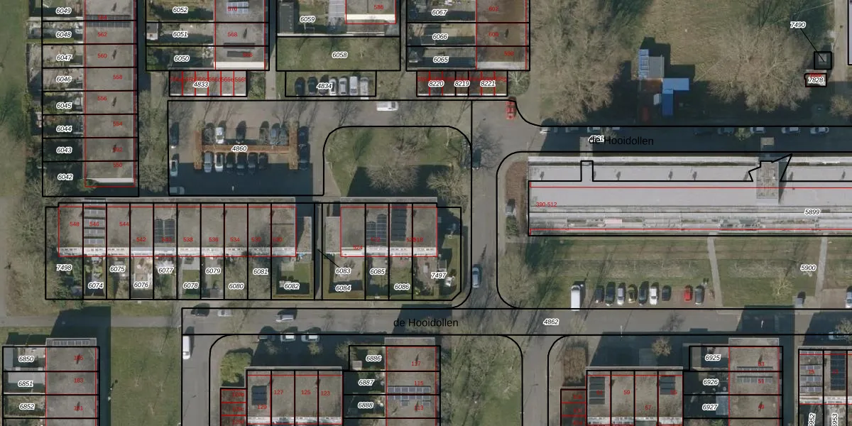 de Hooidollen 518 is gelegen op kadastraal perceel LWD00E7497. Deze kadastrale aanduiding is uniek en wordt gebruikt door het Kadaster om eigendomsrechten en andere zakelijke rechten vast te leggen. Het perceel maakt onderdeel uit van de kadastrale gemeente Leeuwarden.