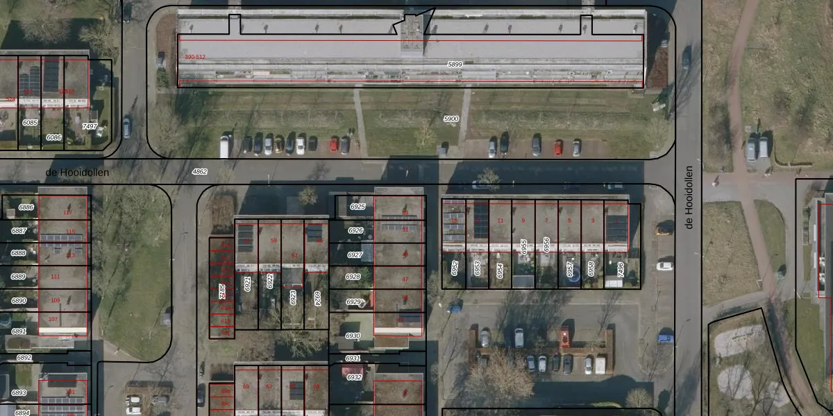 de Hooidollen 53 is gelegen op kadastraal perceel LWD00E6925. Deze kadastrale aanduiding is uniek en wordt gebruikt door het Kadaster om eigendomsrechten en andere zakelijke rechten vast te leggen. Het perceel maakt onderdeel uit van de kadastrale gemeente Leeuwarden.