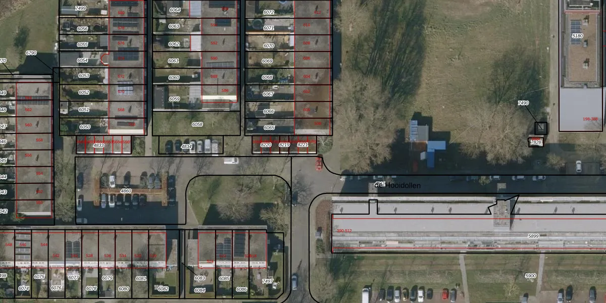 Het perceel waarop de Hooidollen 598-f staat heeft een oppervlakte van 56 m². Dit is een klein perceel. De perceeloppervlakte wordt geregistreerd door het Kadaster. Gedetailleerde informatie over de maten van dit perceel kunt u vinden in het rapport Kadastrale kaart met maatvoering van de Hooidollen 598-f.