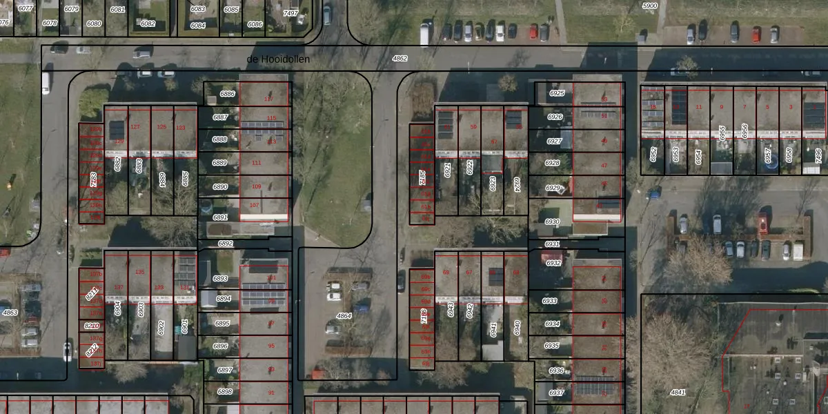 Het perceel waarop de Hooidollen 61-h staat heeft een oppervlakte van 148 m². Dit is een middelgroot perceel. De perceeloppervlakte wordt geregistreerd door het Kadaster. Gedetailleerde informatie over de maten van dit perceel kunt u vinden in het rapport Kadastrale kaart met maatvoering van de Hooidollen 61-h.