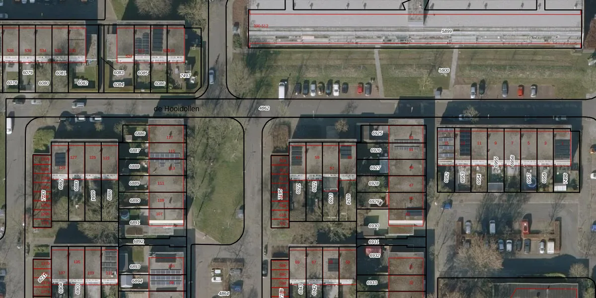 de Hooidollen 61 is gelegen op kadastraal perceel LWD00E6921. Deze kadastrale aanduiding is uniek en wordt gebruikt door het Kadaster om eigendomsrechten en andere zakelijke rechten vast te leggen. Het perceel maakt onderdeel uit van de kadastrale gemeente Leeuwarden.