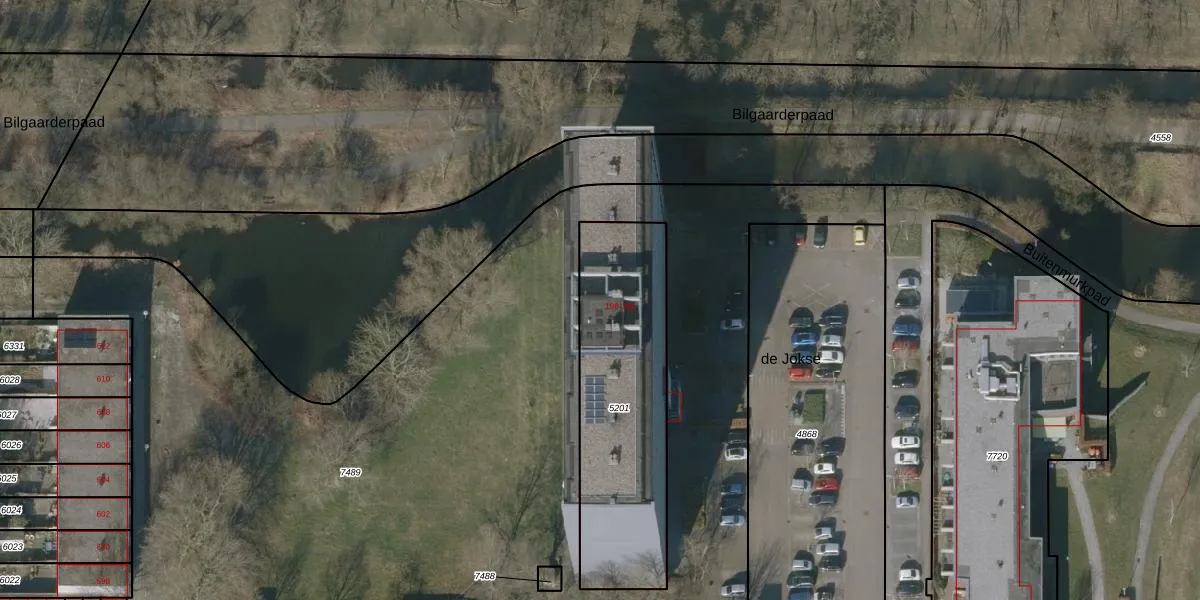 Het perceel waarop de Jokse 222 staat heeft een oppervlakte van 890 m². Dit is een groot perceel. De perceeloppervlakte wordt geregistreerd door het Kadaster. Gedetailleerde informatie over de maten van dit perceel kunt u vinden in het rapport Kadastrale kaart met maatvoering van de Jokse 222.