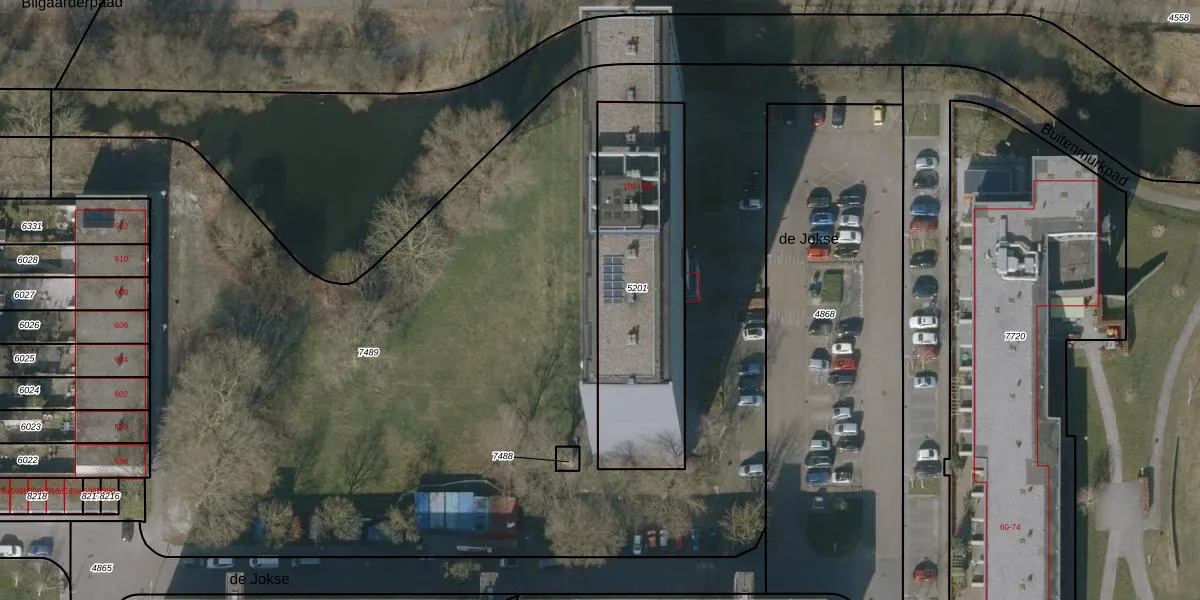 Het perceel waarop de Jokse 300 staat heeft een oppervlakte van 890 m². Dit is een groot perceel. De perceeloppervlakte wordt geregistreerd door het Kadaster. Gedetailleerde informatie over de maten van dit perceel kunt u vinden in het rapport Kadastrale kaart met maatvoering van de Jokse 300.