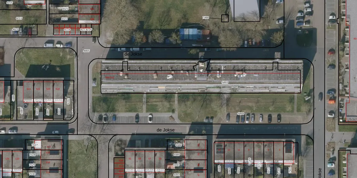 de Jokse 494 is gelegen op kadastraal perceel LWD00E5893. Deze kadastrale aanduiding is uniek en wordt gebruikt door het Kadaster om eigendomsrechten en andere zakelijke rechten vast te leggen. Het perceel maakt onderdeel uit van de kadastrale gemeente Leeuwarden.