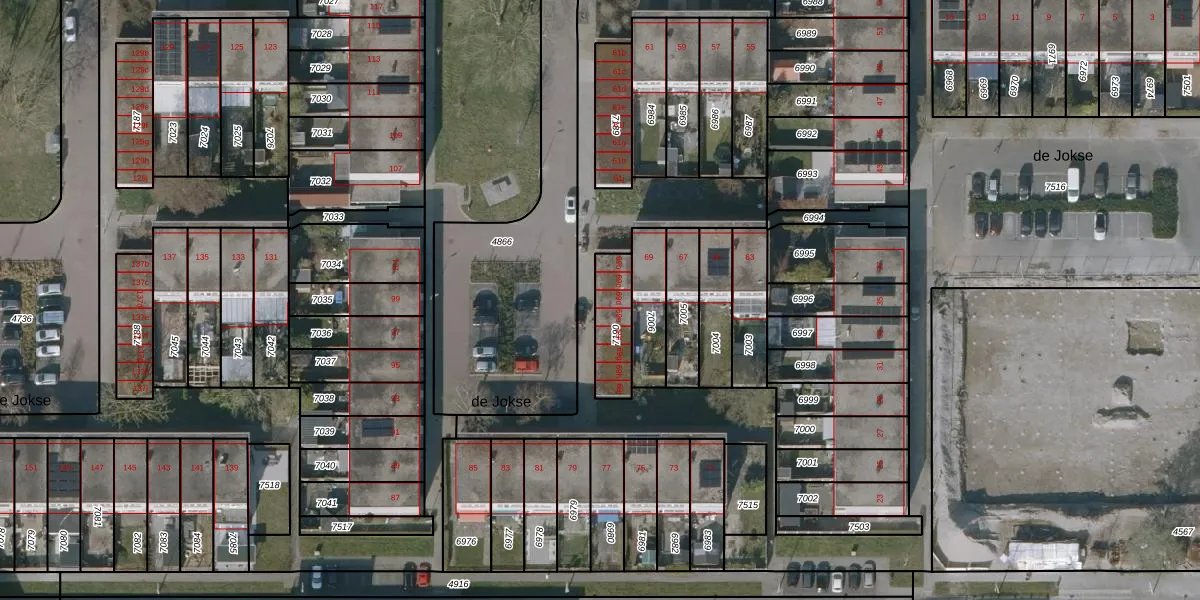 Het perceel waarop de Jokse 69-d staat heeft een oppervlakte van 148 m². Dit is een middelgroot perceel. De perceeloppervlakte wordt geregistreerd door het Kadaster. Gedetailleerde informatie over de maten van dit perceel kunt u vinden in het rapport Kadastrale kaart met maatvoering van de Jokse 69-d.