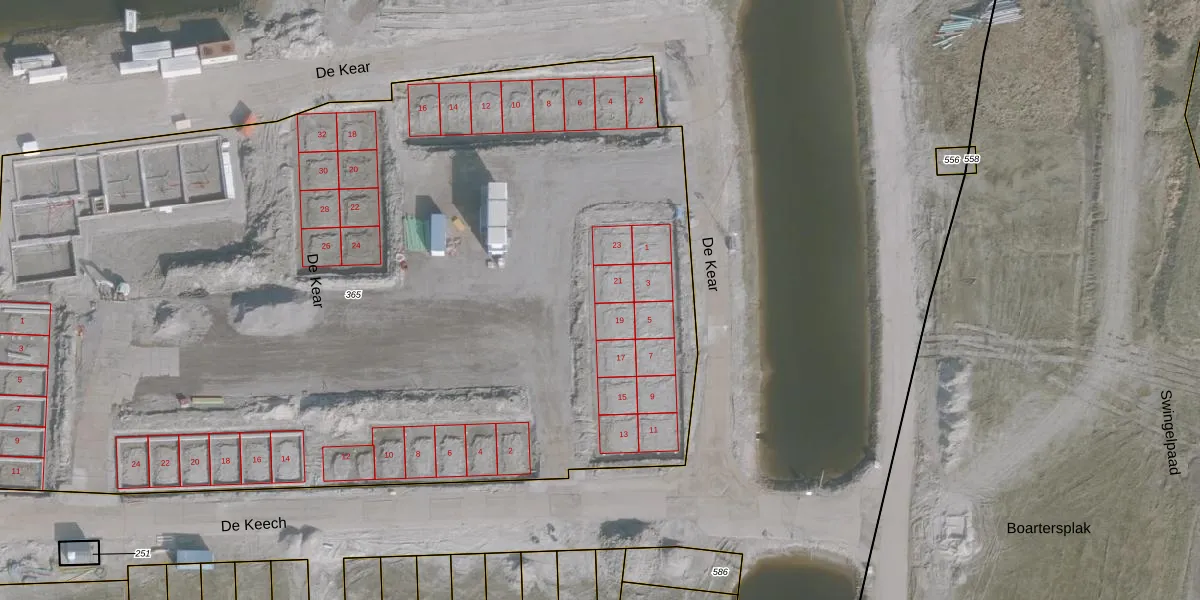 Het perceel waarop De Kear 21 staat heeft een oppervlakte van 7293 m². Dit is een zeer groot perceel. De perceeloppervlakte wordt geregistreerd door het Kadaster. Gedetailleerde informatie over de maten van dit perceel kunt u vinden in het rapport Kadastrale kaart met maatvoering van De Kear 21.