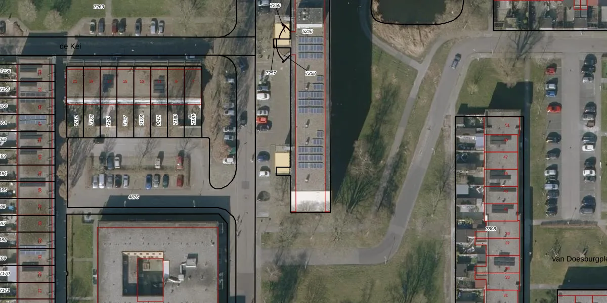 de Kei 156 is gelegen op kadastraal perceel LWD00E5226. Deze kadastrale aanduiding is uniek en wordt gebruikt door het Kadaster om eigendomsrechten en andere zakelijke rechten vast te leggen. Het perceel maakt onderdeel uit van de kadastrale gemeente Leeuwarden.