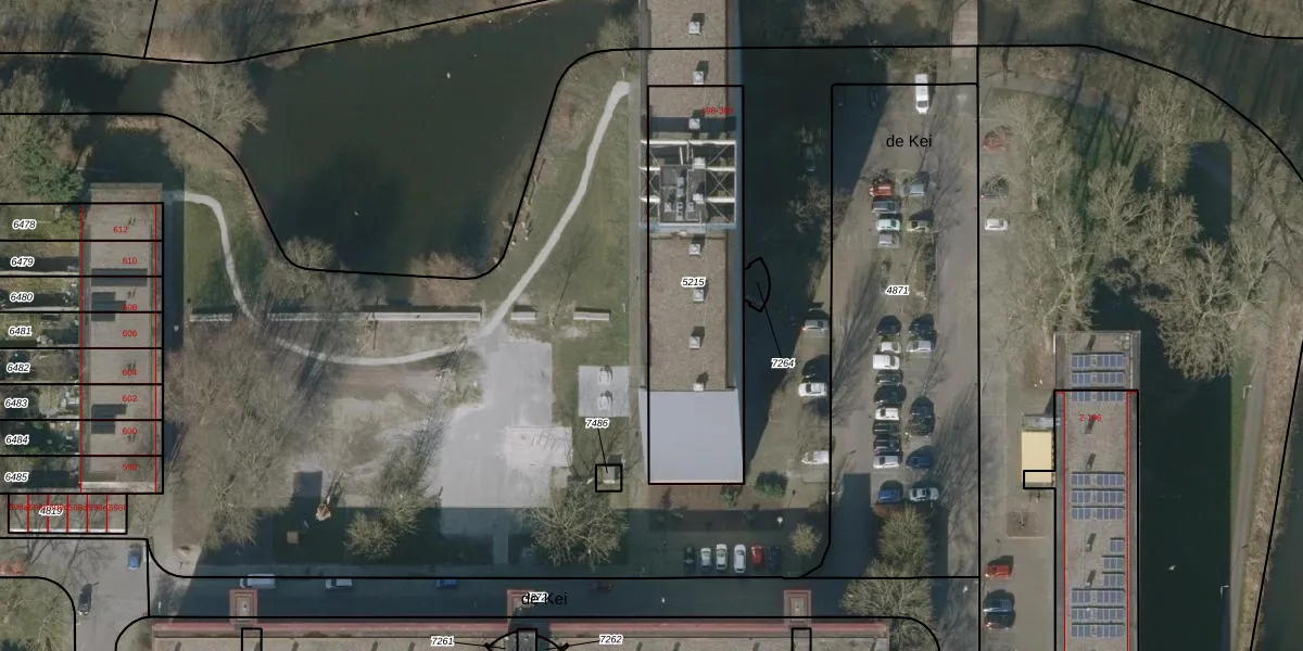 de Kei 320 is gelegen op kadastraal perceel LWD00E5215. Deze kadastrale aanduiding is uniek en wordt gebruikt door het Kadaster om eigendomsrechten en andere zakelijke rechten vast te leggen. Het perceel maakt onderdeel uit van de kadastrale gemeente Leeuwarden.