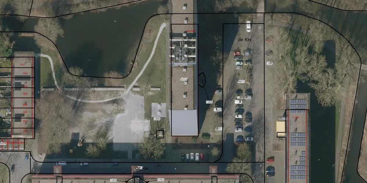 de Kei 324 is gelegen op kadastraal perceel LWD00E5215. Deze kadastrale aanduiding is uniek en wordt gebruikt door het Kadaster om eigendomsrechten en andere zakelijke rechten vast te leggen. Het perceel maakt onderdeel uit van de kadastrale gemeente Leeuwarden.