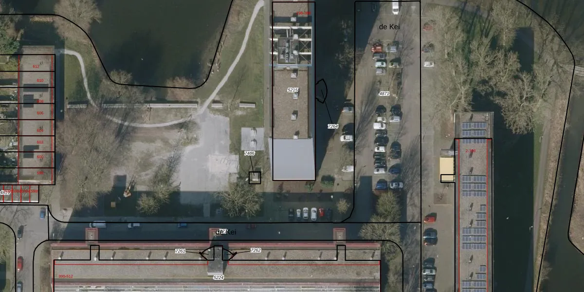 de Kei 374 is gelegen op kadastraal perceel LWD00E5215. Deze kadastrale aanduiding is uniek en wordt gebruikt door het Kadaster om eigendomsrechten en andere zakelijke rechten vast te leggen. Het perceel maakt onderdeel uit van de kadastrale gemeente Leeuwarden.