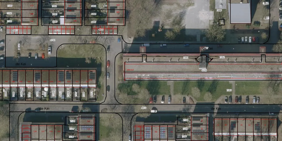 de Kei 422 is gelegen op kadastraal perceel LWD00E5224. Deze kadastrale aanduiding is uniek en wordt gebruikt door het Kadaster om eigendomsrechten en andere zakelijke rechten vast te leggen. Het perceel maakt onderdeel uit van de kadastrale gemeente Leeuwarden.