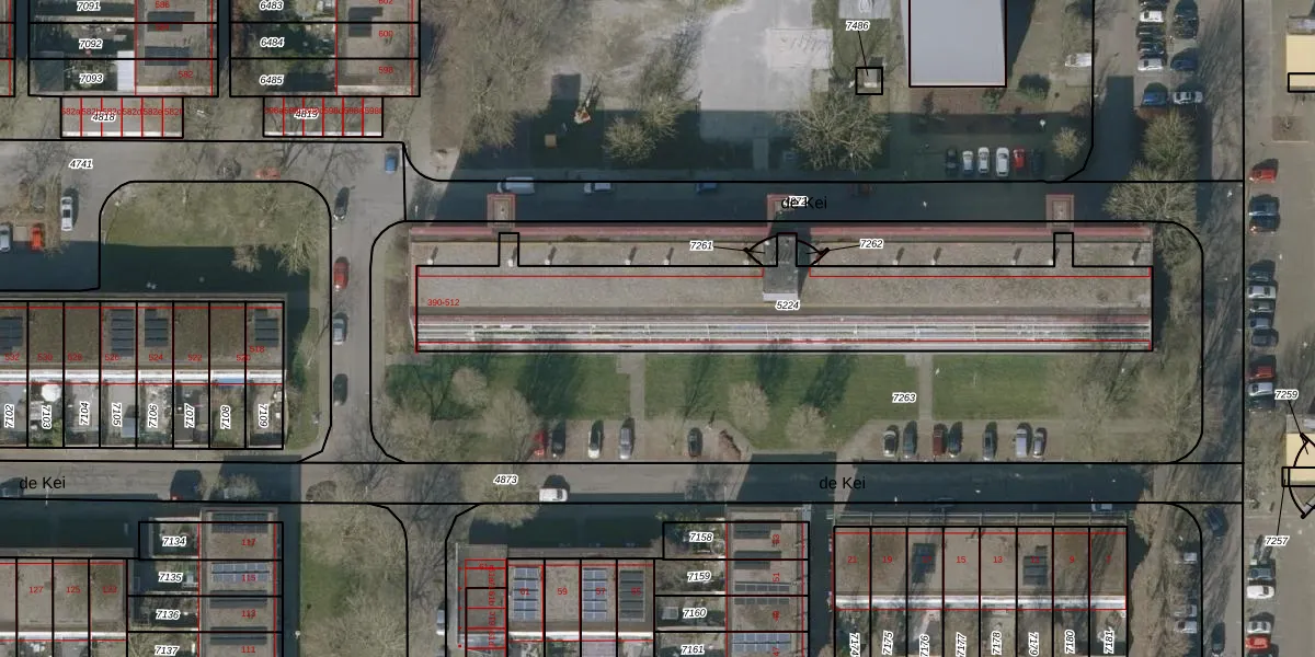 de Kei 486 is gelegen op kadastraal perceel LWD00E5224. Deze kadastrale aanduiding is uniek en wordt gebruikt door het Kadaster om eigendomsrechten en andere zakelijke rechten vast te leggen. Het perceel maakt onderdeel uit van de kadastrale gemeente Leeuwarden.
