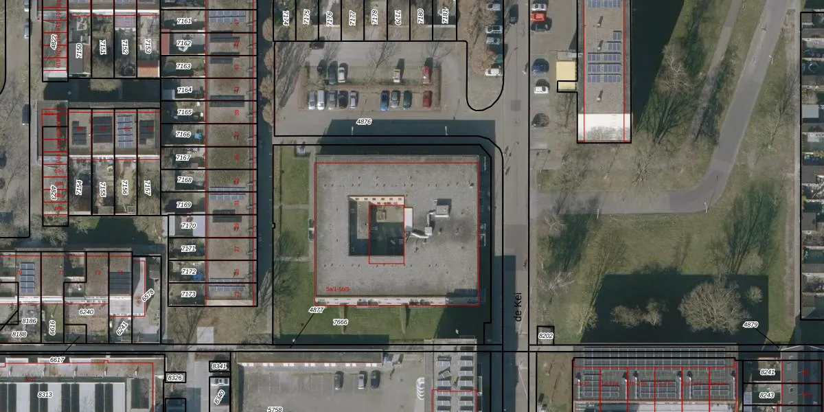 de Kei 5-a-7 is gelegen op kadastraal perceel LWD00E7666. Deze kadastrale aanduiding is uniek en wordt gebruikt door het Kadaster om eigendomsrechten en andere zakelijke rechten vast te leggen. Het perceel maakt onderdeel uit van de kadastrale gemeente Leeuwarden.