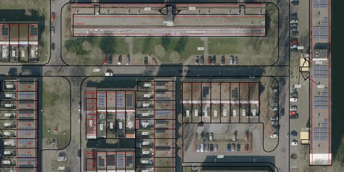 Het perceel waarop de Kei 53 staat heeft een oppervlakte van 126 m². Dit is een middelgroot perceel. De perceeloppervlakte wordt geregistreerd door het Kadaster. Gedetailleerde informatie over de maten van dit perceel kunt u vinden in het rapport Kadastrale kaart met maatvoering van de Kei 53.