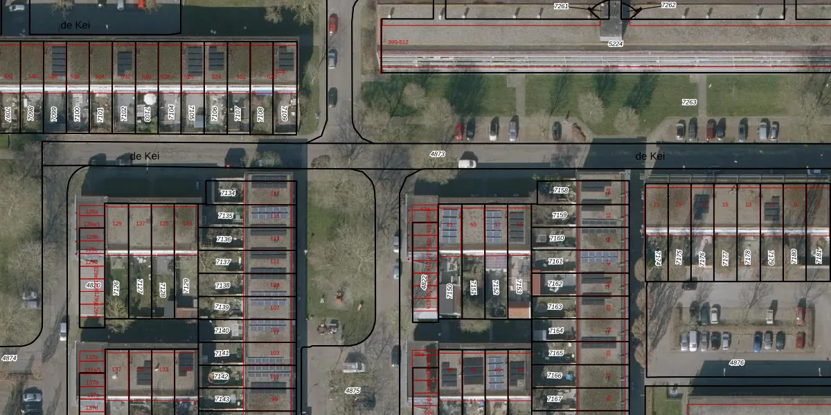 Het perceel waarop de Kei 61-a staat heeft een oppervlakte van 2,5 ha. Dit is een zeer groot perceel. De perceeloppervlakte wordt geregistreerd door het Kadaster. Gedetailleerde informatie over de maten van dit perceel kunt u vinden in het rapport Kadastrale kaart met maatvoering van de Kei 61-a.