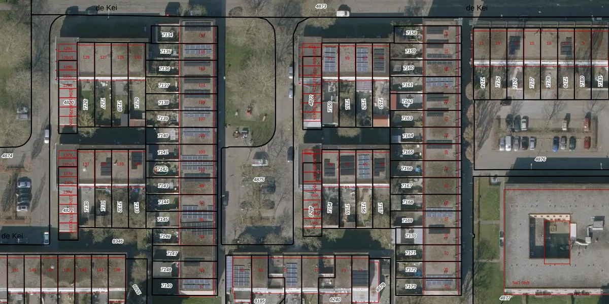 Het perceel waarop de Kei 69-a staat heeft een oppervlakte van 2,5 ha. Dit is een zeer groot perceel. De perceeloppervlakte wordt geregistreerd door het Kadaster. Gedetailleerde informatie over de maten van dit perceel kunt u vinden in het rapport Kadastrale kaart met maatvoering van de Kei 69-a.